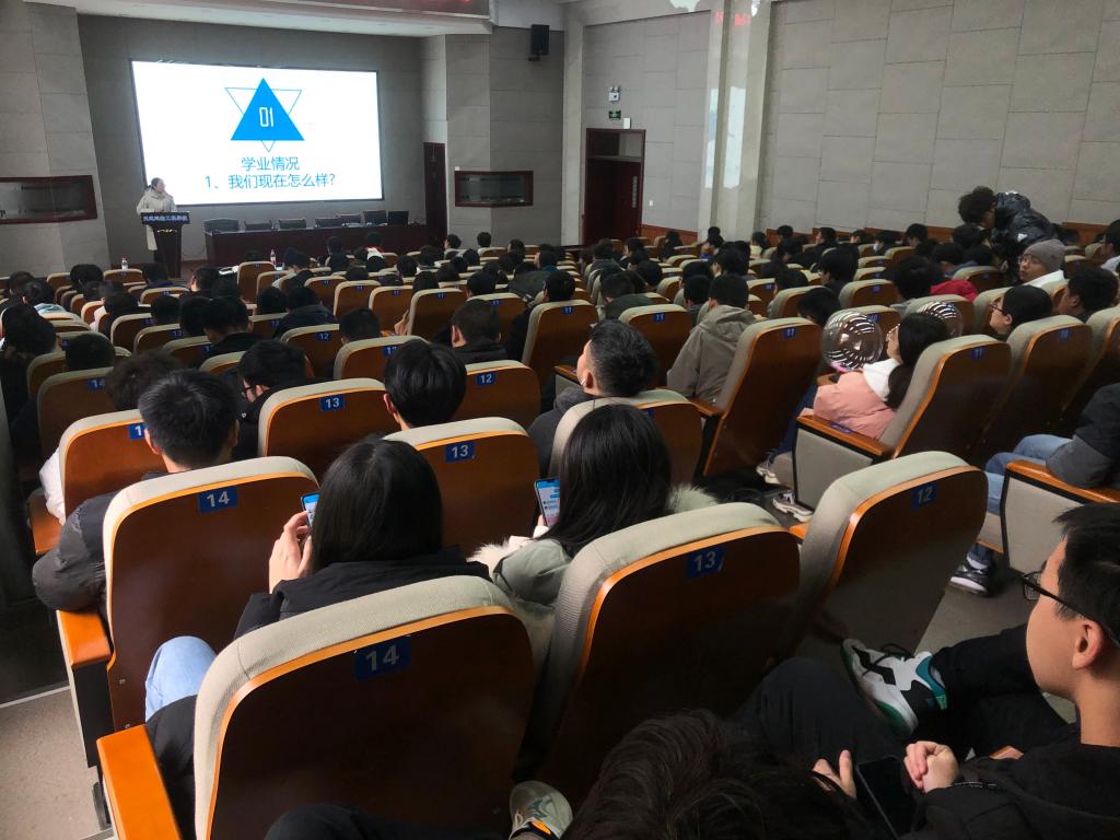 会上,谢琼通过分析各班的挂科与补考情况、学分差额总数及四六级通过率,对2018级的学业情况进行总结,并根据学校规章制度结合学生情况指出旷课、挂科、考试舞弊等违纪行为的严重后果,对选课、学科竞赛及申请推免生等事项进行了详细说明,使同学们明白自身学业与考风考纪的重要性。随后,曹骁从疫情防控相关要求、安全教育与养成教育三个方面展开讲述,指出全体同学要加强疫情防控意识,严格遵守疫情防控常态化形势下学校校园管理有关规定,做好安全防护,并结合生活实际提醒同学们注意个人生命健康与财产安全,重点防范电信网络诈骗,同时强调宿舍卫生与管理,鼓励同学们积极创建文明宿舍。最后,曹骁向同学们提出大学生“要具备什么素质和能力”、“如何提高个人综合竞争力”、“怎样更好地实现人生价值”三个问题,希望同学们主动做好大学规划。