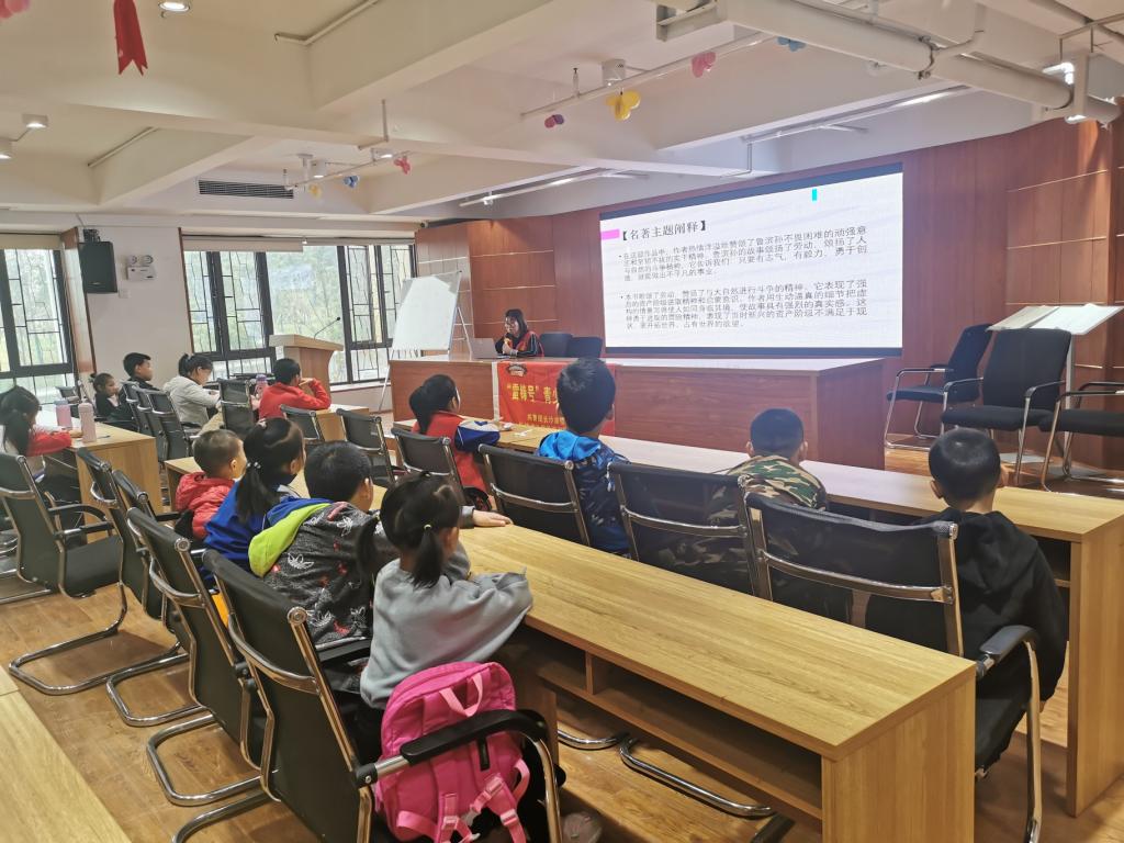 志愿者单佳琪为孩子们带来了一堂名著导读分享课,她结合相关动画介绍《鲁滨逊漂流记》这本书中的人物关系与精彩内容,帮助孩子们在独自面对困难时,始终保持积极乐观的心态,迎难而上,克服困难,挑战自我。