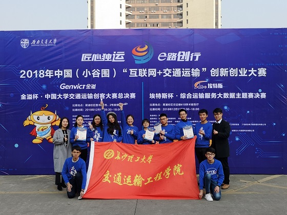 12月10日至12日,2018年中国(小谷围)“互联网+交通运输”创新创业大赛之金溢杯·中国大学交通运输创客大赛总决赛在西南交通大学举办。永利官网交通运输工程学院“RE轻骑——无源助力自行车”、“互联网+共享智慧物流箱”、“儿童智能公交卡设计”三个项目团队进入决赛,陈旭亮、焦雨玲、张雨涵、江景文、唐鹏、肖东翔、张雪琴、王杰、曾晨妮、蒋悦、张思佳、曾晶、宁博、曾青、陈夙乾这15名同学在领队马玉文、彭笠老师和指导老师周爱莲、袁翔、向慧、弓晋丽与龙科军的指导下,经过激烈角逐,均荣获三等奖。