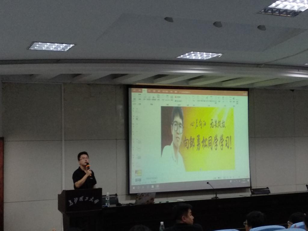 曾凯讲解了毕业生档案、户口和报到证的相关事宜,并布置毕业生下一阶段的任务安排,同时对毕业生文明离校提出了相关要求,并对毕业生寄语,希望毕业生能以邹勇松学长为榜样,积极面对生活、工作中出现的苦难。