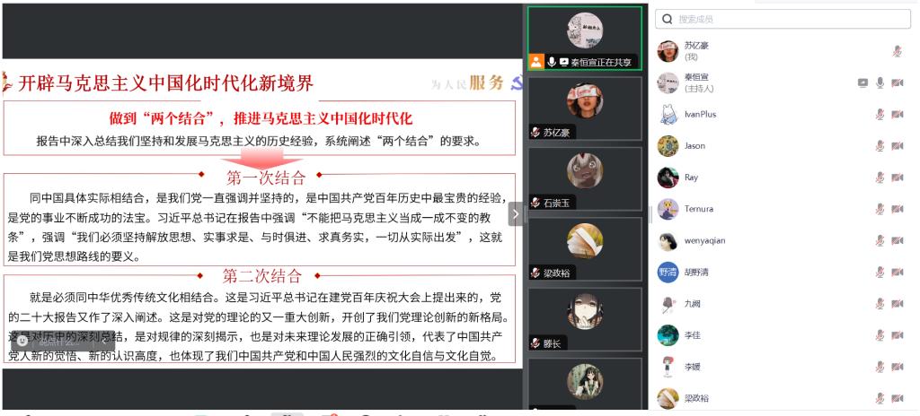本次活动中,各班的下班党员通过视频学习、集中宣讲、主题交流等形式,组织研究生新生认真学习党的二十大及永利集团88304官网第四次党代会精神。其中以交研2309班为例,宣讲内容包括深刻领会党的二十大及学校党代会的主题、深刻理解开辟马克思主义中国化时代化新境界、深刻把握中国式现代化的中国特色和本质要求、深刻认识新阶段永利集团88304官网的奋斗目标四个部分。本次主题活动积极引导同学们进一步增强责任感和使命感,以崭新的风貌学习、发扬党的二十大精神和永利集团88304官网第四次党代会精神。