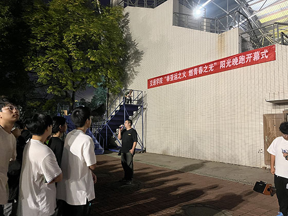 为丰富学生课余文化生活,增强学生体育锻炼,10月24日晚,交通学院于云塘校区田径场举行“举亚运之火,燃青春之光”阳光晚跑开幕式。此次开幕式由交通学院学生会体育部成员尹任飞主持,交通学院学工办辅导员刘禹出席,共计150名学生参加。