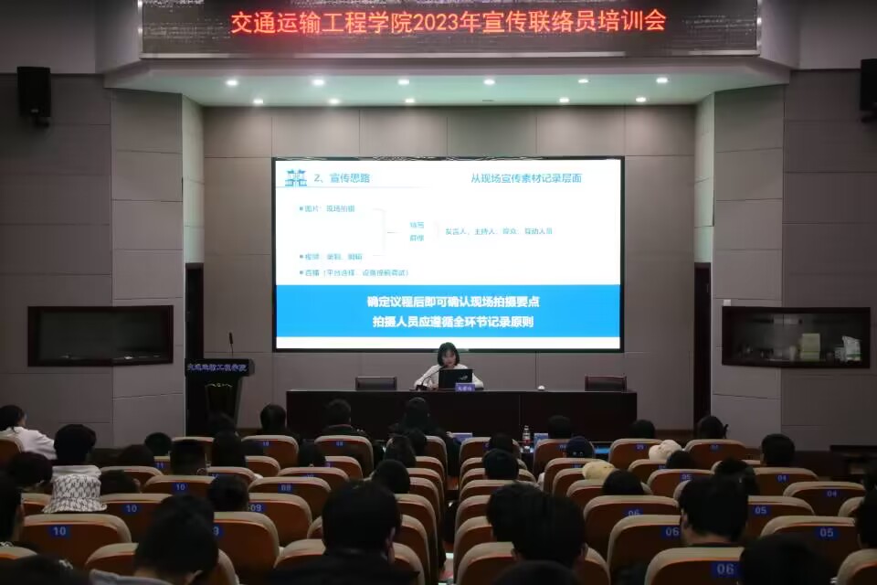 为学院宣传工作提供指导思想,提升宣传质量,11月11日,交通学院于云塘校区工二B301召开2023年宣传联络员会议。此次会议由交通学院辅导员刘禹主持,国际工学院辅导员吴紫怡,交通学院辅导员潘博洋出席,交通学院各年级宣传委员,各部门宣传联络人,年级工作小组代表共计140余人参加。