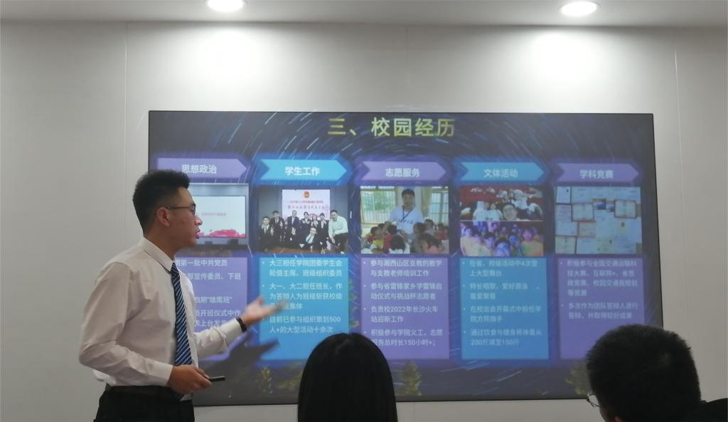 为促进广大学生科学合理规划学业与职业发展,提升就业竞争力。交通学院于11月21日在云塘校区行三一站式服务大厅举办“中交建筑杯”大学生职业规划大赛复赛,学院学工办李特超、冯心凌、史亚杰三位老师担任复赛的评委。