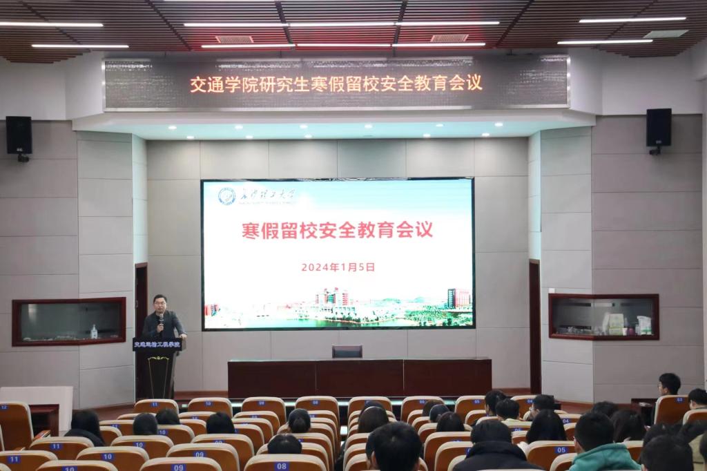 寒假将至,为进一步引导留校学生树立安全观念,增强安全防范意识,维护校园安全稳定,1月5日,交通学院于工二B301召开研究生寒假留校安全教育大会。研究生辅导员周浩及全体留校研究生参加会议。