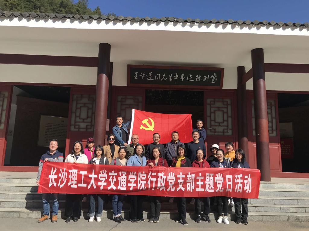 11月13日,交通学院行政党支部赴浏阳革命教育基地开展主题党日活动,参观王首道故居、王首道同志生平事迹陈列室以及红一方面军后方医院旧址等红色基地,院领导孔伟红、涂道勇、张锐和支部全体党员参加。