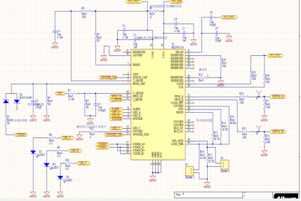 主芯片BQ500212A及外电路如图2-1所示,主要是根据LED_MODELOSS_THR外接不同的电阻来选择不同的显示模式状态/转换阈值(具体选择需根据芯片手册),通过COMM+COMM-来检测负载的不同情况,根据负载不同输出不同的LED的显示电平、PWM信号和snooze/sleep信号。