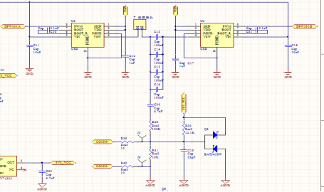 全桥驱动和通信部分电路如图2-2,BQ500212A通过COM+/-端来采集信号区分不同状态从而执行各种操作。电路中4100nf的电容与发射线圈组成谐振,其值大小需根据具体的线圈进行适当调整,否则系统的效率会受到影响,值得注意的是,通信部分的信号采集在它们的下面,连接它们的导线不宜过长。