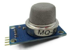 氢气浓度是金属钠运输监控最关键的参数,根据车厢内的氢气浓度可以直接判断所运输的金属钠是否与空气中的水蒸气接触并发生了反应。本研究选用MQ-8氢气传感器模块对氢气浓度进行采集。MQ-8氢气传感器模块的气敏元件为在清洁空气中电导率较低的二氧化锡(SnO2),二氧化锡的导电率将随所处环境氢气浓度的增加而变大。 MQ-8传感器模块的实物如图3-7所示,最终设计的MQ-8与Atmega88的通信电路如图3-8所示。