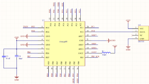 图3-3 DHT11湿度传感器实物图 图3-4 DHT11与Atmege88通信电路图