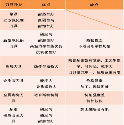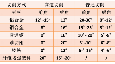 干式切削由于没有切削液的冷却、润滑和辅助排屑等作用,切削温度急剧增高,干式切削过程中刀具和工件之间摩擦增大以及刀具磨损加剧,这就对切削刀具提出了更高的要求,表2对高速切削与普通切削刀具角度进行了对比,用于干式切削的刀具需具备:良好的耐热冲击性和抗粘结性;较高的红硬性和热韧性;良好的耐磨性;切屑和刀具之间的摩擦系数要尽可能小;刀具形状要保证排屑流畅且易于散热;刀具应具有更高的强度和耐冲击韧性等优异的综合性能。目前,用于切削制造工艺的刀具主要有立方氮化硼(CBN)刀具、陶瓷及金属陶瓷材料刀具、涂层硬质合金刀具、金刚石PCD)刀具及超细颗粒硬质合金刀具等,但因其或存在红硬性差、或存在耐磨性不足等缺点,难以满足干式切削对刀具红硬性、耐磨性等的综合性能需求。因此,设计和开发新型综合性能优异的刀具材料,满足干式高速切削对刀具的综合性能要求,是促进干式高速切削技术发展的一项关键技术。