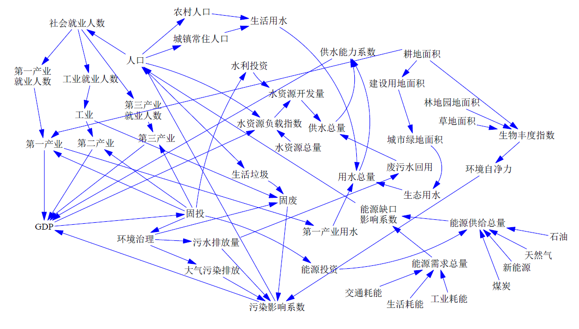 城镇化的内涵涉及人口、经济、空间、社会四个层面,生态环境涉及水资源、能源、环境污染三个层面,各因素之间相互影响与制约。本项目从系统的角度出发,旨在通过数理分析内部关联性和系统动力学模型仿真预测等方法,定量衡量各内部要素间的相互影响,同时反映城镇化与生态环境的动态发展进程,最终对仿真方案进行优化分析,甄选出最优发展模式并提出合理建议。
