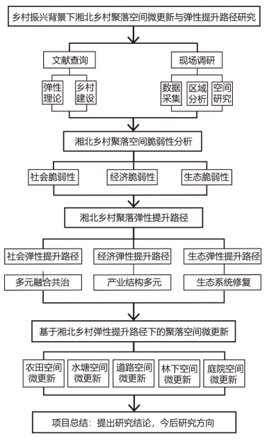 本项目的研究目的是在乡村振兴战略的背景下,从规划的角度探索湘北乡村弹性提升路径,并开展乡村聚落空间微更新设计,以探索基于弹性理念,以湖南为地域背景的乡村振兴途径与方法。