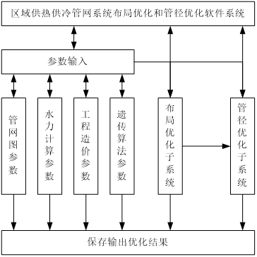2、软件分为两个子系统,分别完成管网布局和管径优化。集成后的软件可以提供给设计院和科研单位,从而减少设计工程师的计算工作量,为区域供冷供热管网系统优化提供一个可靠的参考。