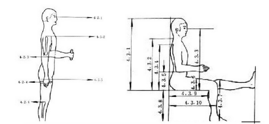 图1 国家标准GB/T10000-1988 《中国成年人人体尺寸》静态示意图