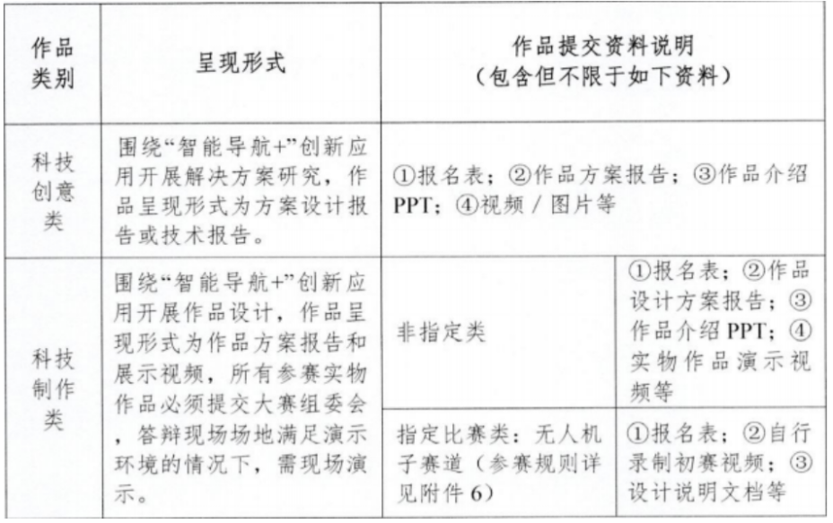 ①要求:基于北斗卫星导航技术开展“智能导航+”创新应用作品设计,作品呈现形式为作品方案报告和视频展示,所有参赛实物作品必须提交大赛组委会,并在指定平台展示。