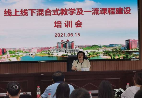 会上,陈瑜处长分析了现阶段永利官网线上线下混合式课程的建设情况,以及目前省属高校在线上线下混合式课程建设方面的总体形势,指出目前线上线下混合式教学课程是永利官网课程建设的短板,大多数混合式课程只停留在较浅的层次上。陈处长强调,课程建设是学校实现百强目标非常重要的一环,做好课程建设向上可以助力专业建设,向下可以助推课堂教学。