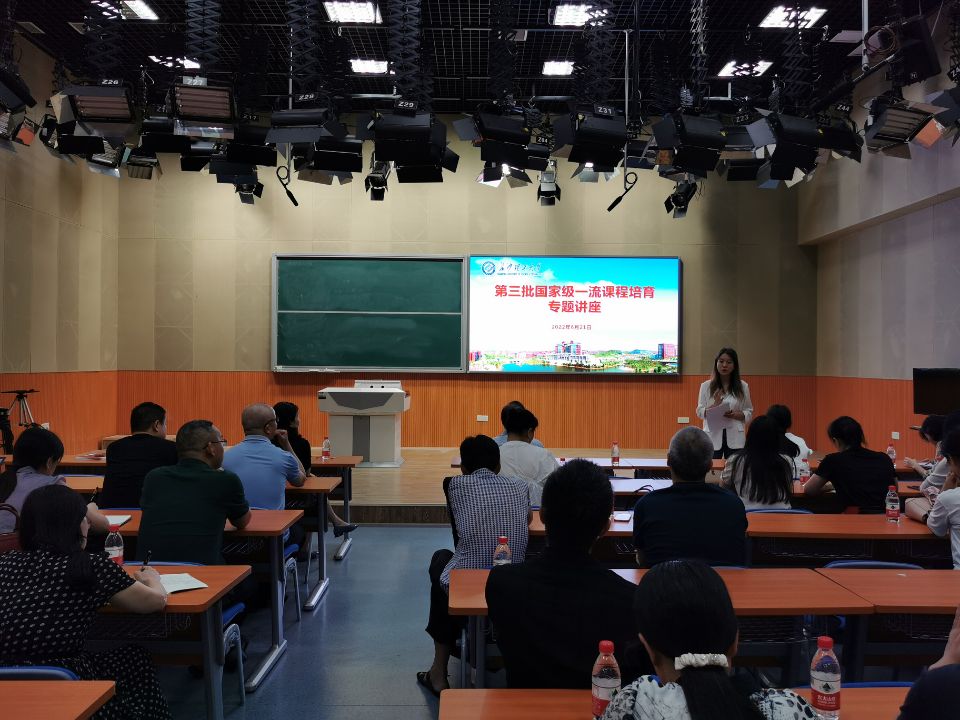 为进一步做好永利官网第三批国家级一流本科课程培育工作,6月21日14:30分在图书馆三楼演播厅,教务处组织举办了第三批国家级一流课程培育专题讲座。会议邀请了湖南大学赵欢教授、中南大学王一凡教授作专题培训,教务处邓丰副处长出席,永利官网获评的40门培育课程的课程负责人及团队成员参与了讲座。