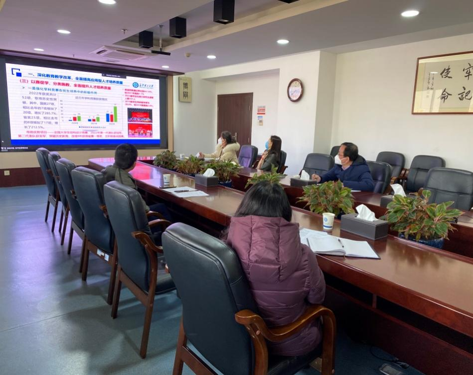 教务处副处长刘思强总结发言指出,2022年是不平凡的一年,各学院克服许多困难,在落实立德树人根本任务、建立“三全育人”工作格局,围绕“以本为本”,落实人才培养质量主体责任,建立健全本科教学质保体系等方面取得成效,为学校平稳有序发展奠定了坚实基础2023年各学院要抓住发展机遇,进一步强化责任担当,开拓创新,以新思路、新要求去谋划高质量发展,在学校党委领导下,再创佳绩。