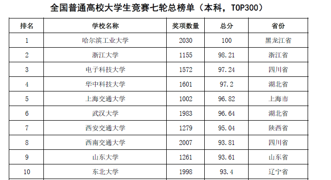 图2 全国普通高校大学生竞赛排行榜七轮总排行榜永利官网位列第50名