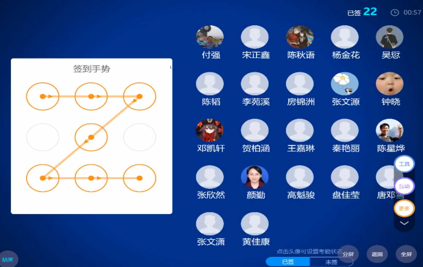 为提高师生应用信息化手段教学的能力,信息化中心特组织开展本次培训,帮助师生熟悉课堂互动工具,增强教师在线互动教学能力。参培人员自主扫码加入虚拟班级,模拟实际上课场景,进入现场签到,投票、问卷、选人、抢答、主题讨论中来,切身体会了活跃的课堂气氛,新鲜的授课环节。