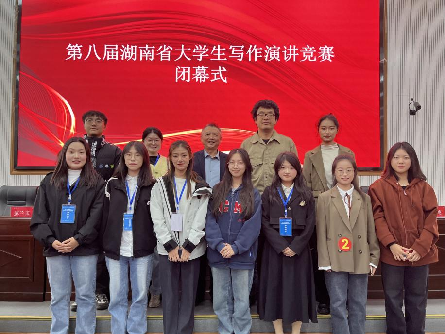 湖南省大学生写作演讲竞赛由湖南省教育厅主办,是面向全省普通高校中国语言文学类专业在校本科生开展的专业学科竞赛活动,以培育人文精神、传承文学经典、提升专业能力、强化专业教学效果为目的,规格高、专业性强、学科属性突出。汉语言文学专业学子在本次赛事中的优异表现,充分显示学院在落实高质量人才培养战略方面的实绩。学院未来将永葆“闯”的精神、“创”的劲头、“干”的作风,为学校实现“百强”大学梦贡献文新力量!