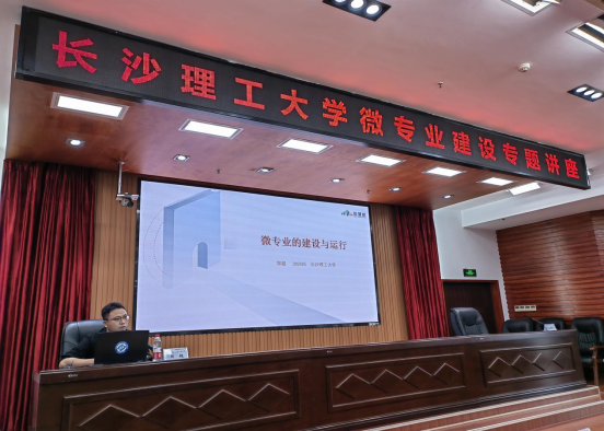5月31日下午,微专业建设专题讲座在云塘校区一办公楼九会议室举行。讲座由教务处挂职副处长张明军主持,智慧树长沙地区负责人郑超主讲,学院分管教学副院长、学院各系主任、微专业申报团队负责人与团队成员等参与了本次讲座。