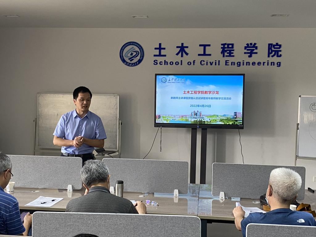 为做好教师课程主讲资格审查和认定工作,进一步提升青年教师的教学水平和课程教学质量,4月26日下午,学院在工科二号楼A419举行了新教师任课资格认定试讲暨青年教师教学交流活动。会议由付果副院长主持,督导组专家刘小燕、张军、喻小明、刘建生、蔡明兮、陈历强担任点评专家。