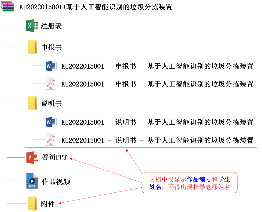 申报书必须单独装订且包含指导老师的亲笔签名和学院盖章(一式一份),说明书和附件一起装订(一式五份),请各参赛队伍将纸质参赛作品提交至校赛组委会办公室(云塘校区新能源大楼2栋501)。