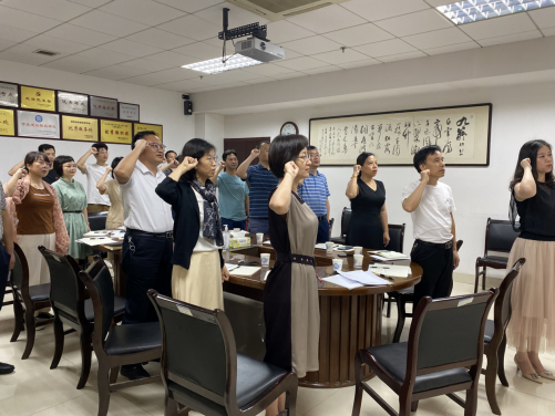 首先,支部副书记蒋菲同志带领全体党员同志整装肃立,举起右,一起重温入党誓词。支部书记刘朝晖同志向全体党员作述职报告重点介绍支部开展党史学习教育的情况。他从以下四个方面进行述职:一是深化理论学习,提高党员思想认识;二是组织实践活动,加强支部凝聚力和战斗力;三是学史力行,积极为师生办实事;四是存在的问题及改进措施。