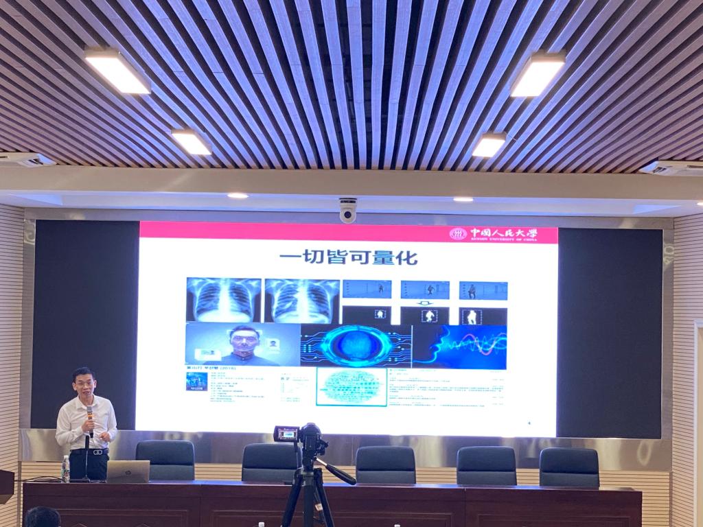 朱利平教授首先给同学们介绍了大数据前沿,他指出,在日常生活中一切皆可量化为数据,图片文字甚至声音都可以量化为数据。他通过生动的例子展示了大数据的特点和挑战,如数据量巨大、数据来源多样、数据质量复杂等。朱教授强调,要有效地利用大数据,就需要运用统计学的方法和思想。