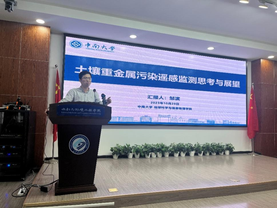2023年10月29日上午,水利与环境工程学院邀请中南大学地球科学与信息物理学院邹滨教授为我院师生主讲“水科学与水工程类专业前沿系列名师专题讲座”第二讲—土壤重金属污染防治遥感监测思考与展望。讲座在永利集团88304官网云塘校区工科三号楼B319会议室举行。副院长盛丰、地理信息科学专业负责人武海鹏副教授以及地理信息科学专业师生代表参加并聆听了本次讲座。