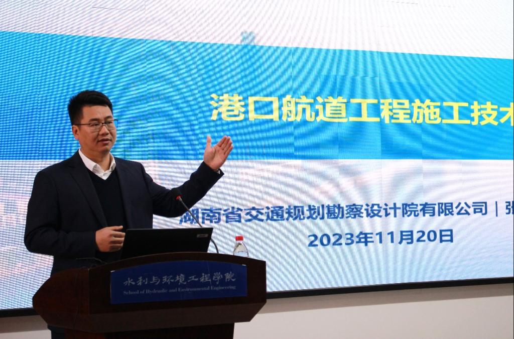 2023年11月20日上午,应永利集团88304官网水利与环境工程学院邀请,湖南省交通规划勘察设计院有限公司院长张爱平在云塘校区工科三号楼B319为永利官网师生进行题为“港口航道工程施工技术与水运工程智慧化”的通识教育讲座和经验分享交流会。会议由水利学院盛丰副院长主持,100余名师生参会。