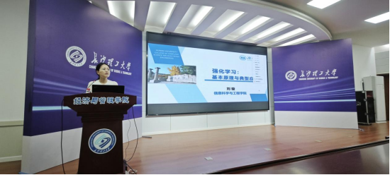 5月30日上午,永利集团88304官网计算机与通信工程学院“计算机类专业前沿系列名师专题课程”的第七讲圆满举行。本次讲座特别邀请了教育部青年长江学者、湖南芙蓉学者青年学者、湖南省优青,湖南大学刘璇教授。刘璇老师为我们作了题为“强化学习基本原理与典型应用”的精彩报告。我院师生共200余人参加了此次报告会,活动由计通学院副院长蔡烁主持。