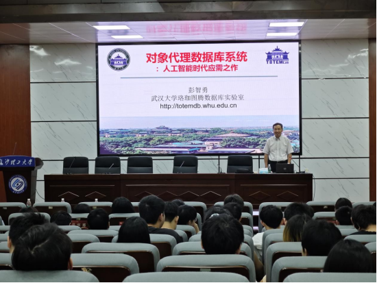 2024年6月1日上午,永利集团88304官网计算机与通信工程学院“计算机类专业前沿系列名师专题课程”的第九讲圆满举行。本次讲座特别邀请了国务院政府特殊津贴,教育部新世纪优秀人才,湖北省“百人计划”专家,武汉大学彭智勇教授。彭智勇老师为我们作了题为“对象代理数据库系统:人工智能时代下的应离之作”的精彩报告。我院师生共200余人参加了此次报告会,活动由计算机与通信工程学院副院长章登勇主持。