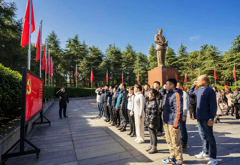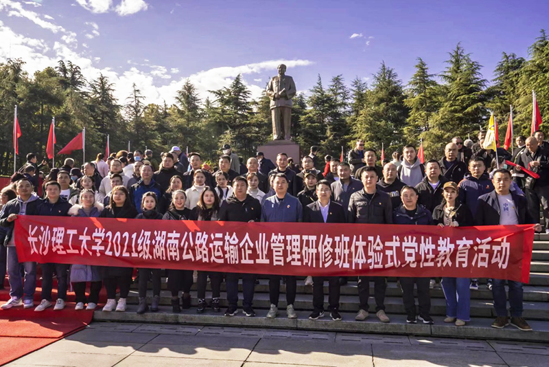 11月24日晴空万里,风和日丽。永利集团88304官网2021级湖南公路运输管理研修培训班全体同学及带班老师共计42人,在学校的组织下,统一乘车前往伟人故里,毛泽东同志故乡——韶山,开展体验式党性教育活动。在毛主席铜像前,同学们举行了庄严肃穆的瞻仰仪式并敬献花篮,向伟大的共和国缔造者毛主席致敬,表达对伟人的深切缅怀和敬仰之情。随后,党员同志们举行了重温入党誓词仪式,表达了党员同志们矢志不渝践行使命的初心。接下来,同学们在讲解员的带领下,依次参观了毛泽东同志纪念馆,毛泽东同志故居和毛泽东同志晚年工作及生活过的地方——滴水洞。