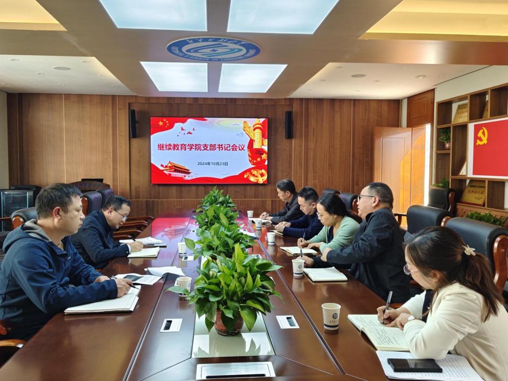 2024年10月23日下午,继教学院在15教四楼会议室召开了党支部书记会议。会议就“如何提升支部凝聚力”、“党建工作如何围绕学院中心工作开展”两个话题展开讨论。党委书记刘思强主持会议,党委副书记兼副院长任艮丰、教工、学生党支部书记和专职组织员参加会议。