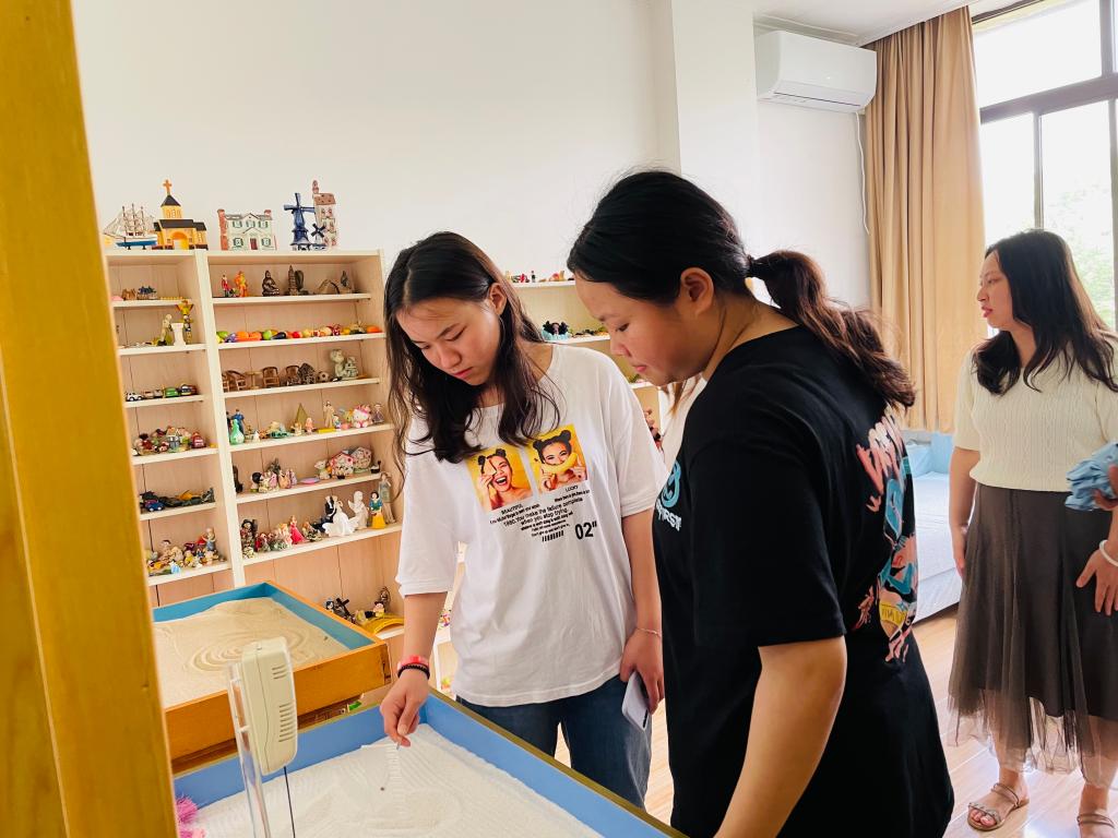 为增进师生对心理咨询环境、内容和功能的了解,更好地向学生推介心理中心的咨询资源,在学校心理健康教育中心的统筹组织下,6月1日,继教学院组织学院学工团队、朋辈心理互助员参观学校金盆岭心理咨询室。本次体验活动是永利官网开展“5·25”心理健康教育主题活动之一。