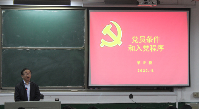 开班典礼结束后,永利官网原副校长黎正稳教授为学员们讲授《党员条件与入党程序》。
