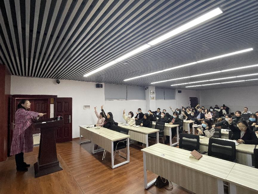 培训邀请了湖南师范大学心理健康教育中心主任余洁作题为“用爱和智慧为青春导航”的专题讲座。余洁从现今大学生心理健康教育面临的险峻形势、教师在心理健康教育中的重要作用、开展心理健康教育的注意事项三个层面逐次递进讲解,列举大量翔实的案例,通过开展趣味小游戏、心理测试等方式使得课堂生动有趣。余洁语重心长说:作为老师,须牢记心理危机干预流程,秉承危机干预的原则、人本主义的理念,在遵守法律规定的前提下,尊重学生隐私,切实保护学生的人格、尊严、人身安全不受侵犯,用积极的态度和科学的方法呵护学生成长。