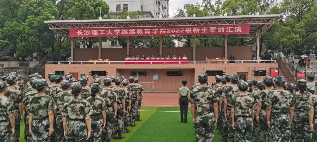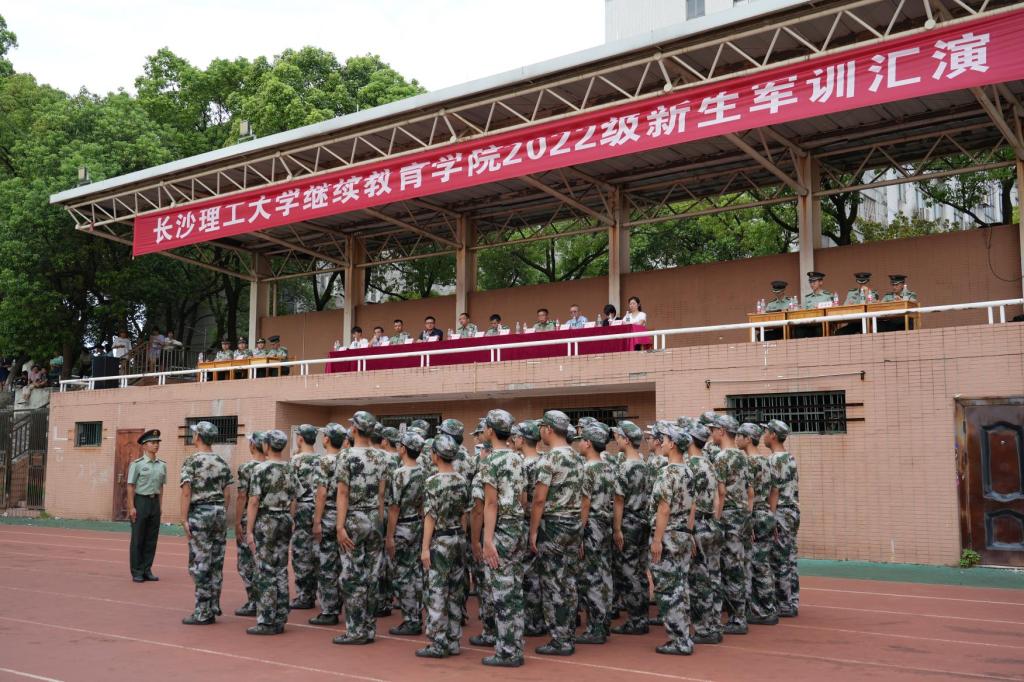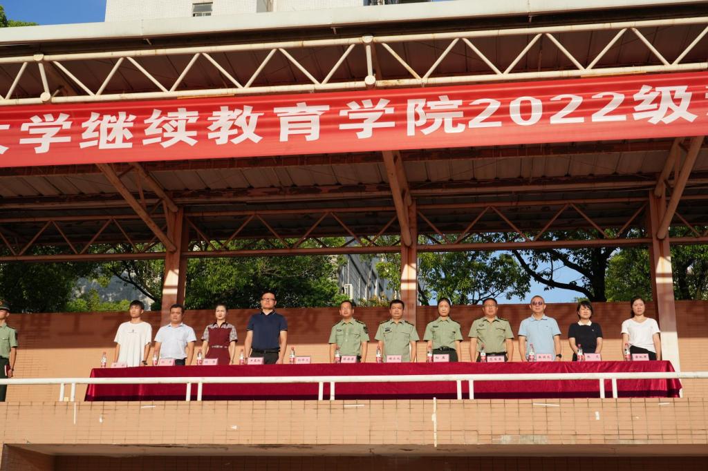 2022年8月27日上午,继教学院在金盆岭校区室外运动场开展了2022级新生军训汇演。学院党委副书记谢士成、副院长向英和院学工部、本部助学中心负责人以及各校企合作部负责人出席了此次军训汇演。