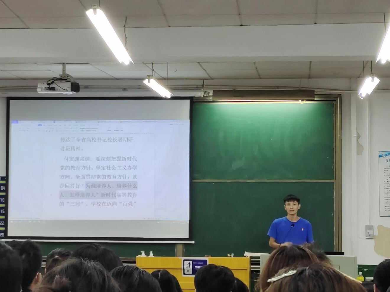 首先,范主任强调了五点:其一,党的二十大的召开,是每个党员值得高兴的事情,各位入党同志秉承一颗为共产主义奋斗终身的心,对党忠诚;其二,对于学院安排不放国庆假,是为了大家的安全考虑,减少外出,避免接触红码,党员和入党积极分子们应当起到模范带头作用服从学校安排;其三,关于反诈知识,学院多次强调,并就此开展了主题班会,大家需要提高警惕;其四,消防安全要重视,禁止在寝室使用大功率电器、在公共场合吸烟;最后,范主任对青年学生的学习提出要求,不但要深入学习党的理论知识,更要学好专业知识,苦练本领,严格要求自己,早日成为一名为国家、为社会做贡献的有志青年。