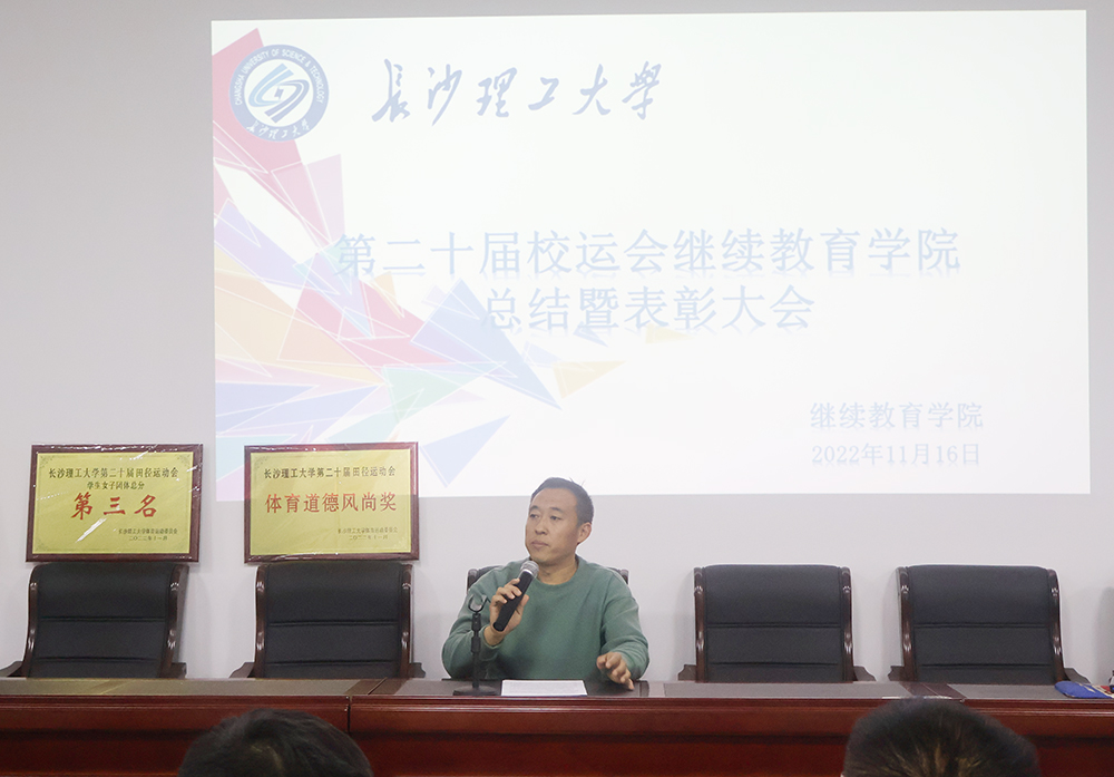 2022年11月16日,永利集团88304官网继续教育学院在14号教学楼118会议室,举行了“青春长理,逐梦前行”第二十届校田径运动会总结暨表彰大会。继续教育学院副书记副院长谢士成、学工部主任范石泉,各教学部学工负责老师,参加本届校运会的全体指导老师、运动员及工作人员参加会议。