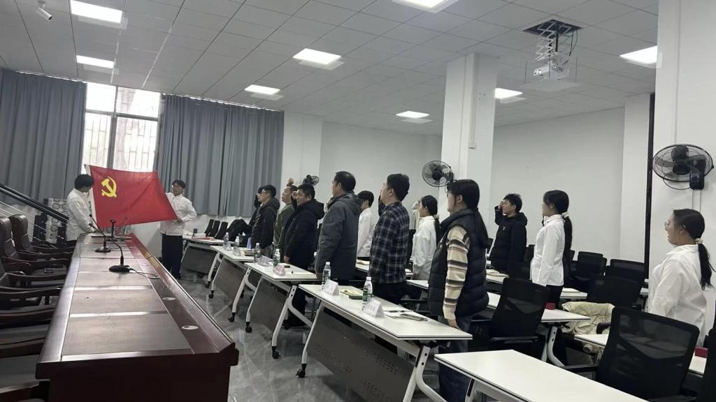 随后,支部教师党员代表单乃付带领全体党员高举右拳,面向党旗庄严宣誓。铿锵有力的誓言响彻会场,字字千钧,彰显出党员们对党的无限忠诚,以及为共产主义奋斗终身的坚定决心。