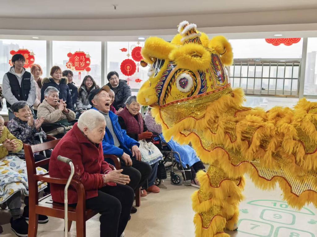 随后,一场精彩纷呈的文艺演出在老年大学活动室温情上演。志愿者们充分发挥才艺,为老人们献上了一场精心准备的视听盛宴。动听的歌曲、优美的舞蹈、刚劲有力的武术表演,以及充满传统文化魅力的舞狮节目,赢得了老人们的阵阵掌声和欢笑。现场气氛热烈而温馨,青春的活力与热情感染着在场的每一位老人,也为本季度的寿星们送上了一份独特而难忘的生日贺礼。