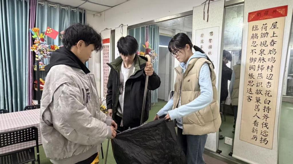 活动尾声,党员们开展了环境美化行动。他们认真清扫院落、整理图书角,将老人们的手工艺品精心布置在展示区,在书画室,几位具有艺术特长的党员还与老人们共同创作书法作品,墨香四溢中架起代际沟通的桥梁,让整个福利院焕发出新的生机。