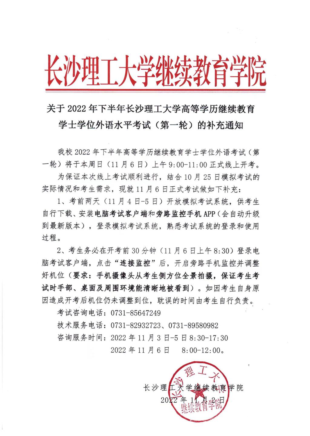 关于2022年下半年永利集团88304官网高等学历继续教育学士学位外语水平考试(第一轮)的补充通知