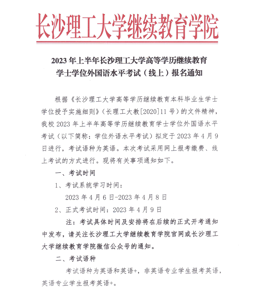 2023年上半年永利集团88304官网高等学历继续教育学士学位外国语水平考试(线上)报名通知