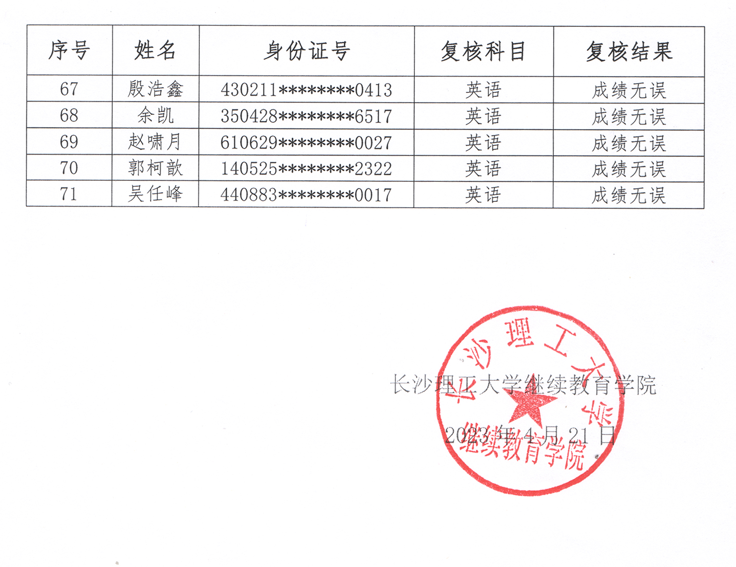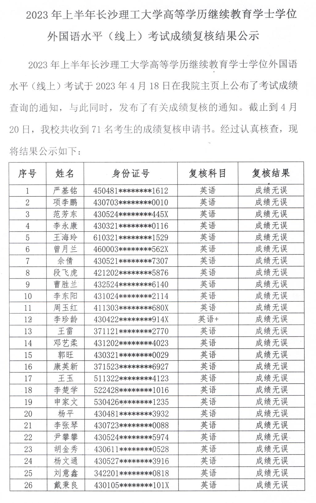 2023年上半年永利集团88304官网高等学历继续教育学士学位外国语水平(线上)考试成绩复核结果公示