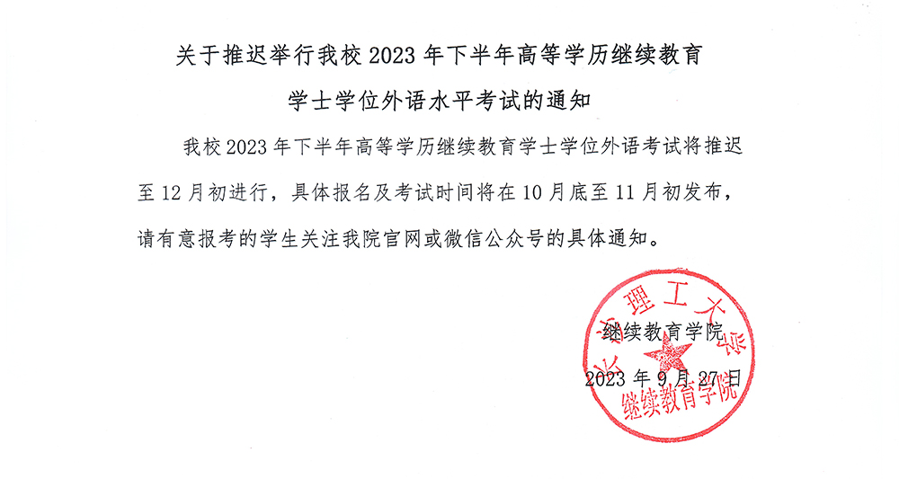 关于推迟举行永利官网2023年下半年学士学位外语水平考试的通知